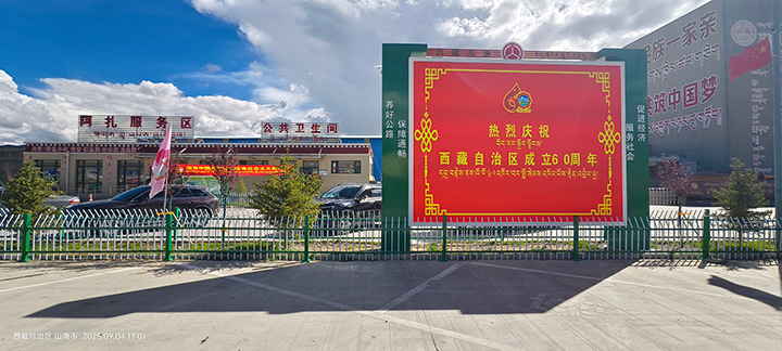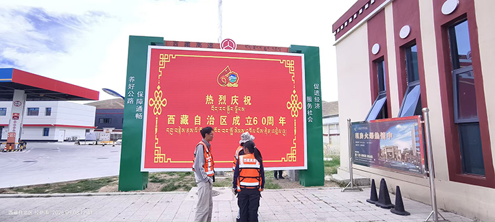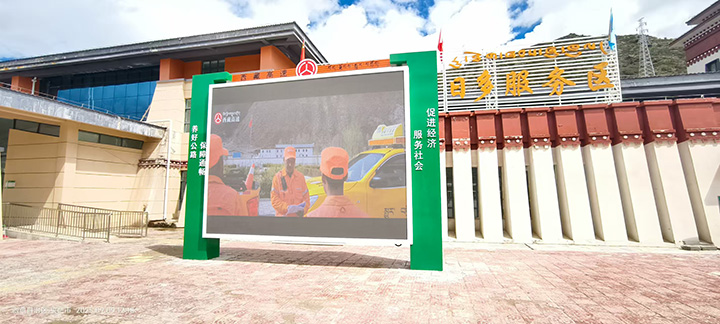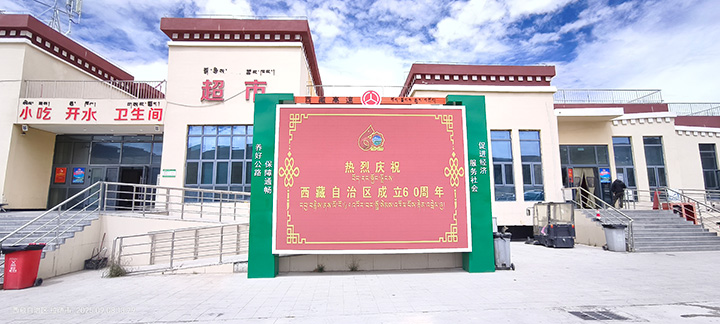 在西藏自治區成立60周年大慶之際,我司為西藏自治區交通運輸廳承建,仁布服務區(單側集中)、那曲服務區(左幅)、日多服務區(左右幅)、阿扎服務區(左右幅)、當雄服務區(左右幅)共計8塊室外P3高清全彩宣傳大屏。成為西藏公路交通建設,戶外多媒體宣傳的一道亮麗風景線,得到用戶的一致好評,順利通過驗收,投入使用!